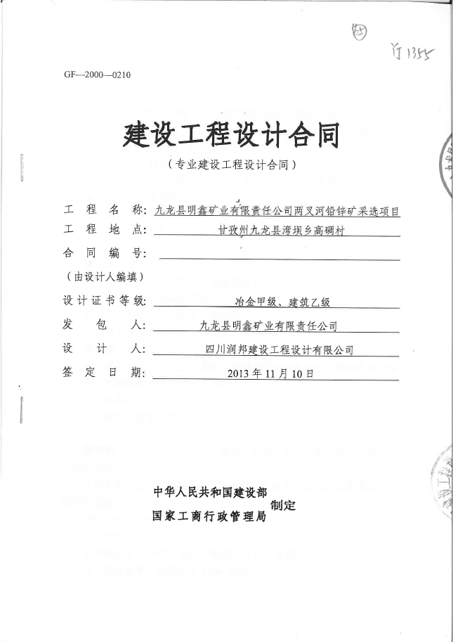 九龍縣明鑫礦業(yè)有限責(zé)任公司兩叉河鉛鋅礦采選項(xiàng)目
